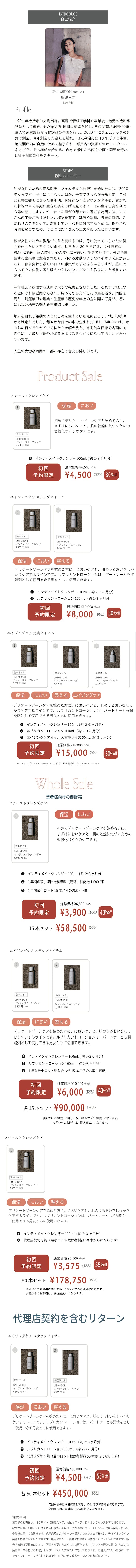 2024/03/18 18:01「UMI+MIDORI」のプロジェクトオーナーの馬場早希です。この度は、プロジェクトをご支援いただきまして誠にありがとうございます。先日のメッセージの内容を再度シェアさせていただきます。すべての製品の納品を終え、無事検品を完了することができました。今回皆様のご支援のおかげで製品化に至ることができました。本当にありがとうございます。<ご注意>プロジェクトは未達のため、皆様に返金されており、製品は配送されておりません。※今回のプロジェクトは目標金額が未達成のため、集まった金額は全て返金となります。ご購入希望いただける方は公式サイトからぜひよろしくお願いいたします。オンラインストア:https://umimidori.com/今回プロジェクトにご支援いただいた<みなさまへの特典>今回のプロジェクトでみなさまのおかげで製品化を実現することができ、感謝を込めて個別メッセージより皆様へクーポンコードを発行させていただきました。ご支援いただいた方へのお礼を含めてコードを発行しております。決済画面にてコードを入力ください→「こちらは個別メッセージで送付させていただきます。」おひとり様、1回ご使用いただけます。(無期限)また、配送料は明日から3月中は無料となっております。製品化までの道のりでは、直前にボトル会社からボトルが予定日に納品されないトラブルや、また工場の製造工程の中でもトラブルがあり、これまで製品化は何度も行っており慎重に入念に確認をしていたものの、ものづくりはトライアンドエラーが多々ありました。今後の製品化、さらにアップデートしていくために、経験として活かしていきたいと思っています。<サロン様でのお取り扱いのご案内>今回クラファンは未達となり、プロジェクトは閉鎖されてしまいましたが、こちらのシステムの関係上、皆様のお名前をこちらで閲覧できません、個人店のサロン様や美容室でのお取り扱いなども、小ロットから可能になりましたので、ご希望される方はぜひこちらをご確認ください。1年間の配送料無料、また初回クーポンも特典もございます。個人店様・サロン様向け卸サイト:https://goooods.com/@umi_midori<最後に>キャンペーンを企画した際には、皆様にメッセージにてクーポンをお送りします。ぜひチェックしていただけるととてもありがたいです。今後とも、UMI+MIDORIをよろしくお願いいたします!★馬場早希 もっと見るご報告