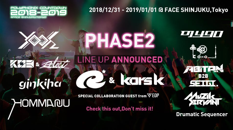 PolyphonixがEDP Lab - TOKYO 2018 -に、Ryu* & kors kがPolyphonix Countdownに出演決定!