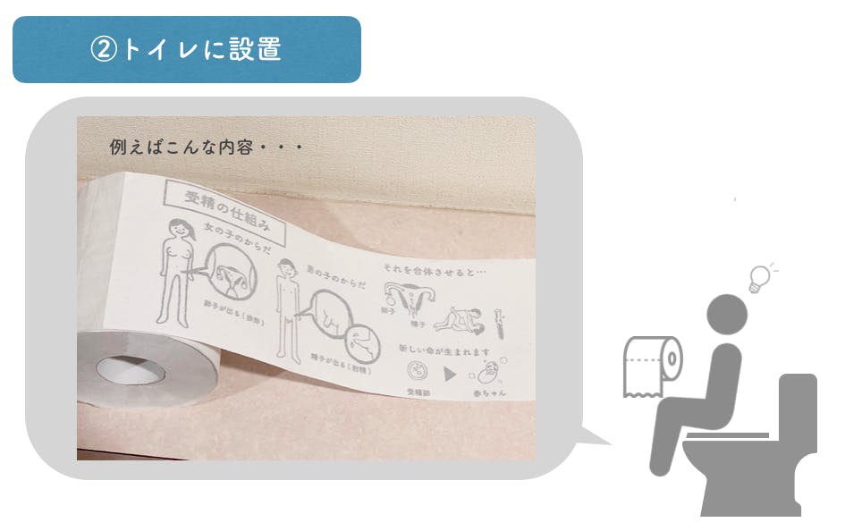 性教育トイレットペーパーとは、性知識を学ぶためのイラストや漫画がかかれているトイレットペーパーです。