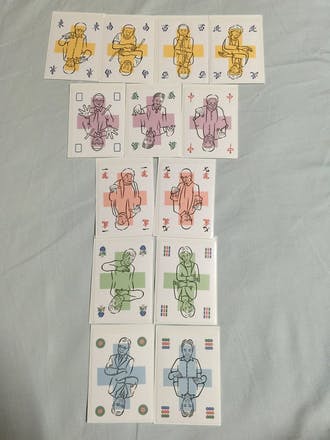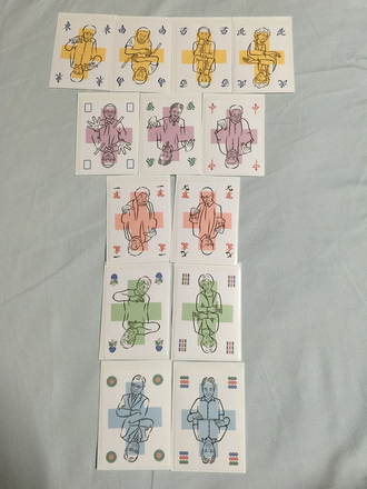 麻雀カードをよくシャッフルしてから一人あたり4枚ずつ配ります。