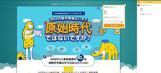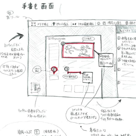 これを利用して直観的な制作指示書をつくることができます。依頼者とクリエーターのやり取りがスムーズになりますし、クリエーター同士のコミュニケーションにも効果を発揮します。例えば、プログラマーがデザイナーに対して、実装して欲しいデザインを伝えたい時などに利用すれば、伝えたい内容が一目瞭然です。