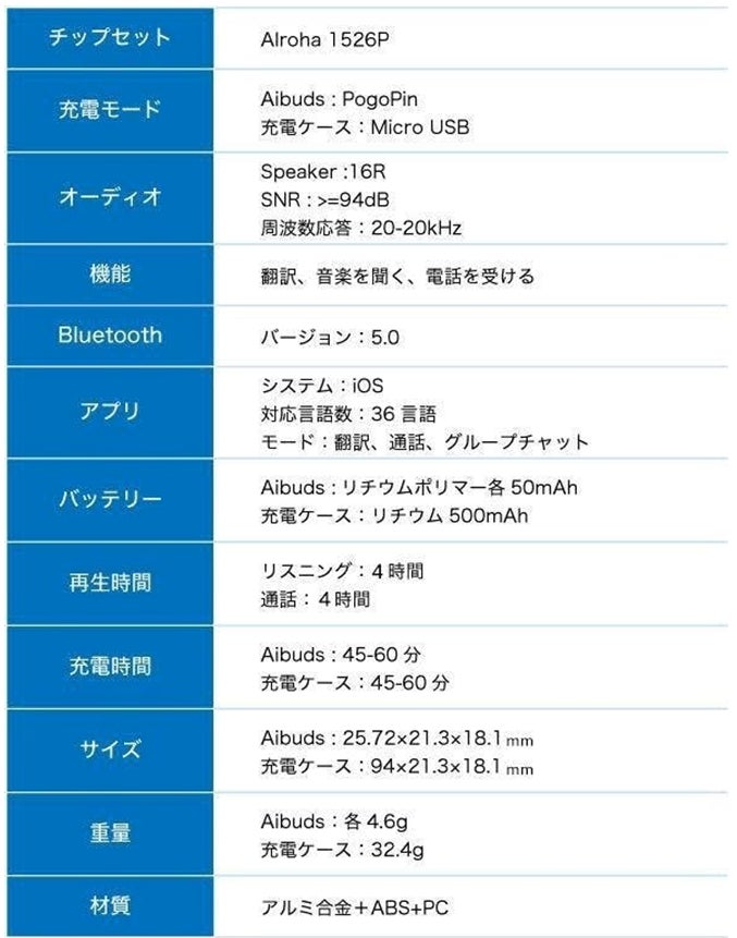 今では話しかけるタイプの翻訳機が沢山ありますが、Aibudsは耳にはめ込むイヤホンタイプ。