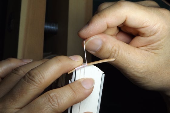 手製本では全ページが一本の糸でつながっています。あえて手のかかる手製本で
