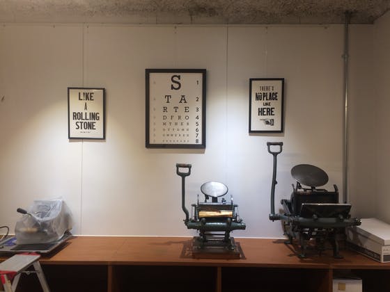 2017/08/23 02:30レセプションパーティーまであと3日と迫ってきました!準備に追われておりますが、少しずつワークスペースも形になってきました!まずはテキンと呼ばれる卓上活版印刷機の設置をやっとしました。 ちょっと台が高めなので、踏み台が必要な方がいるかもしれません。そういう私もチビなので、踏み台用意します! 後ろに飾ってあるのは、九州活版印刷所とNYにあるHOLSTEE社のポスター。両方とも活版印刷で刷られたものです。 さらに、紙をストックする棚も設置しました! ここに名刺サイズ、ハガキサイズ、A4、A3などのいろんな紙をストックするので、ご利用の方はこちらからご購入いただけます!活版印刷向きの紙ってなかなか数枚からでは買えないので、印刷の際は是非ご利用ください〜。 そして、Vandercookの横には貴重な絵をかざりました! これはアートディレクターの千原 徹也さん(れもんらいふ)さんが描いた作品です。 千原さんが主催するれもんらいふデザイン塾一期生全員の名前を、オリジナルタイポグラフィで描いたもの。実は私も一期生として参加していました。そして、れもんらいふと一期生のご厚意で譲っていただいたのです! 活版印刷はもともと文字をデザインする印刷技法。同じ文字をデザインしたこの作品は、活版印刷と相性がいいと思いワークスペースに飾らせていただきました!是非、お越しの際はじっくり見てみてくださいね!さてさて、準備でバタバタしてしまい、ついつい写真を取り忘れてしまうので、いつもご報告をし損ねるのですが、少しでも皆さんに準備の様子をお届けできればと思ってます! もっと見る
