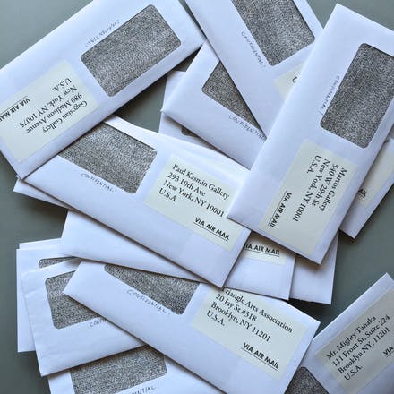 送付先は、ニューヨークのギャラリーやアートコレクター30件程度を選定する予定です。すべての宛先に、毎週封筒が届くのです。