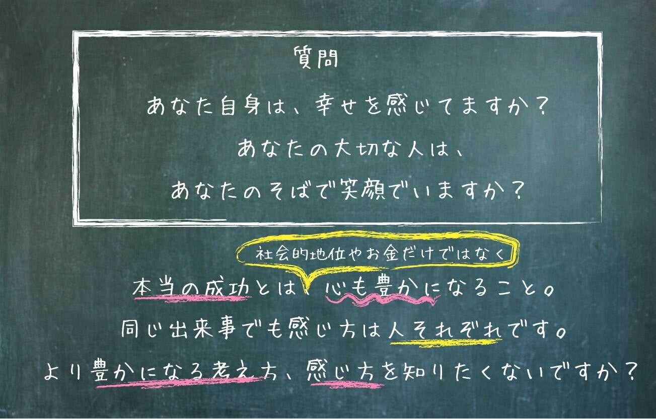 人生を深く考えず、なんとなく流されて生きてきた私が、生きる喜びを感じ幸福になることの本当の意味を、考えていくことができました。今は、毎日がとても充実しています。私のように、学ぶことによって人生を変えられる仲間をたくさんつくっていきたいと思っています。