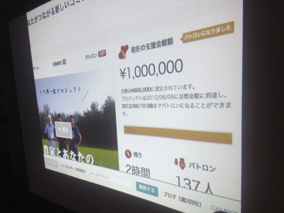 2012/08/09 22:27パトロンの皆様!!!! たった今、目標額100万円を達成致しましたー!!!!!! 本当に嬉しいです!!! 有難うございますー!!!!!! もっと見る
