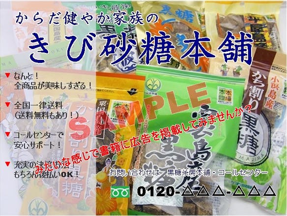 ◎書籍誌面にて、黒糖関連商品紹介1/2ページ作成・【協賛会社】としてロゴもしくは社名・連絡先記載