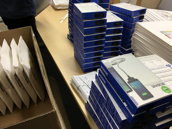 発送準備しています!自立するiPhone用ライトニングケーブル「BOBINE(ボビン)」