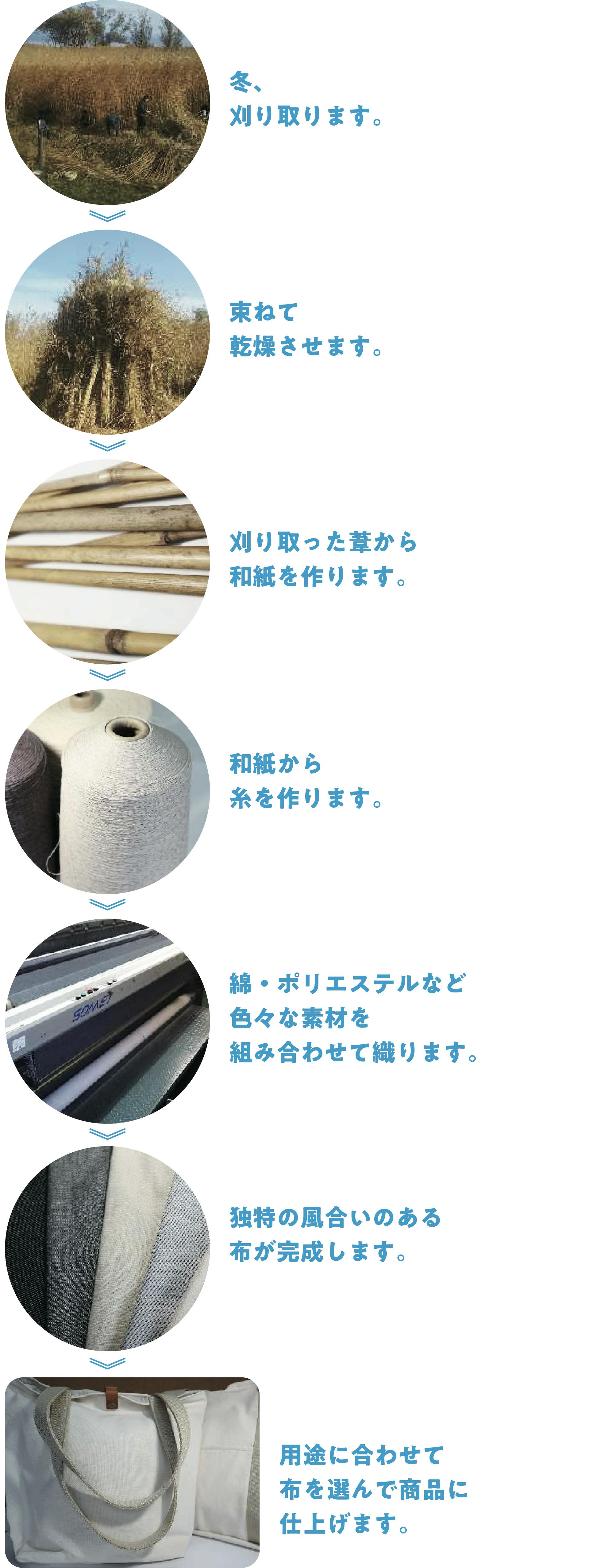 私を含め3人のメンバーでボランティア団体を立ち上げ、葦刈りの活動をしております。そして葦の再利用について考えながら、葦の再利用をした新商品についても多くの方に知っていただきたい!という思いからこの度プロジェクトを立ち上げました。