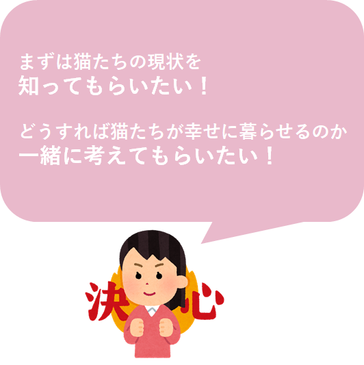 このように、「猫たちの現状を子供たちに伝えたい!」「これからの猫たちの幸せを一緒に考えてほしい!」という想いから、このプロジェクトは始まりました。