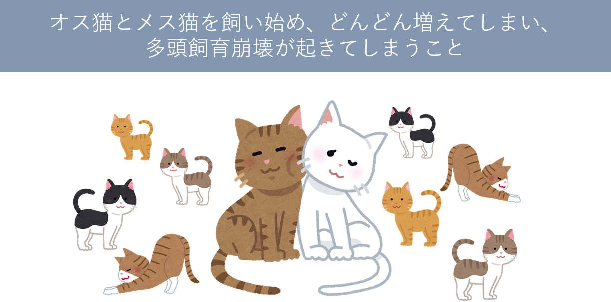 猫の繁殖に関して知識がなかったために引き起こされた多頭飼育崩壊は人間にとっても猫にとっても不幸な結果です。