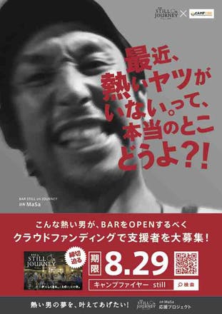 自分が旅で学んだ「出逢うことの可能性」「アクションを起こすことの更なる可能性」をBARというカタチにすることでより多くの人に広めたいと思っています。そのためには、どうしても自分だけの努力では足りない部分「資金」の援助をご理解、賛同していただける皆さんにお願いしたいです。
