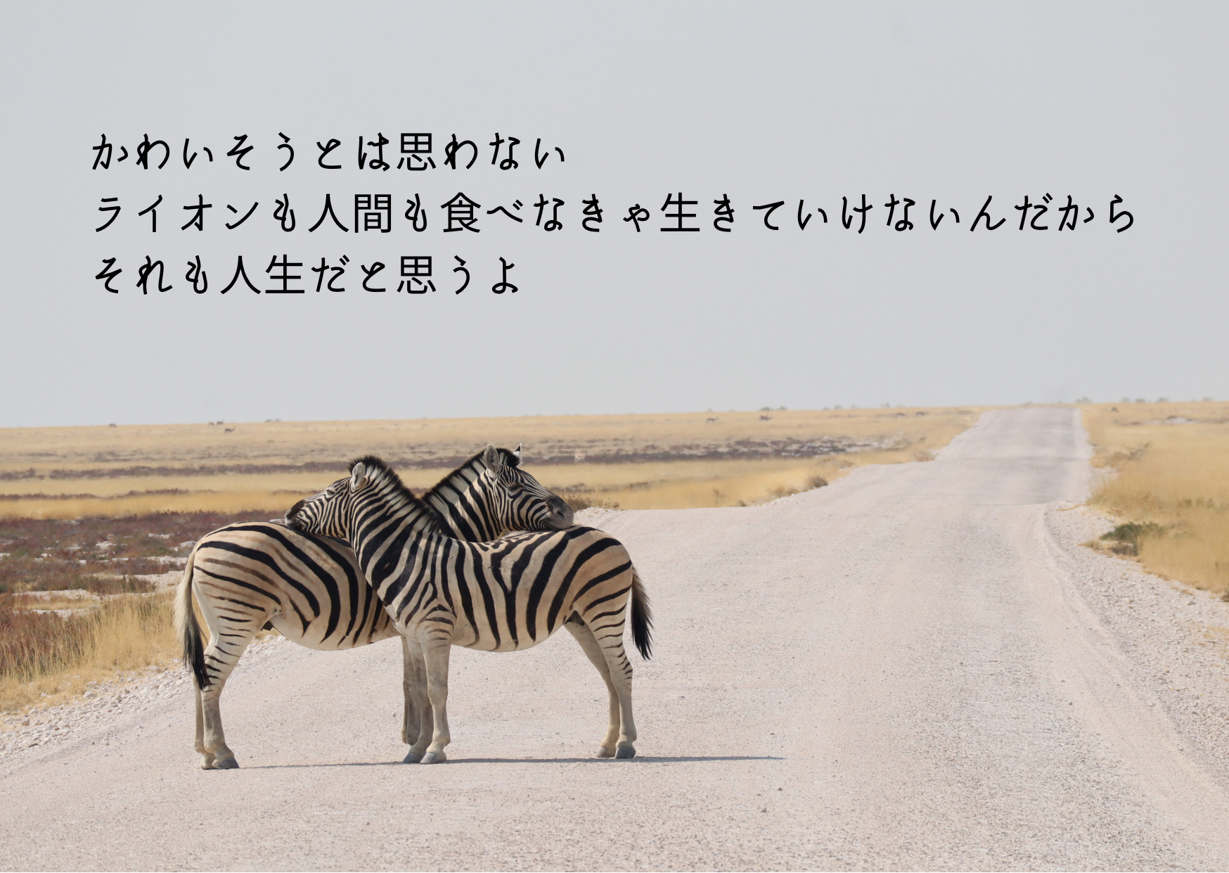 ケニア南部のアンボセリ国立公園でライオンに食べられた草食動物の亡骸を見た際『ライオンに食べられる動物たちは、かわいそうだと思う?』と質問したところ返ってきたのが上の言葉でした。
