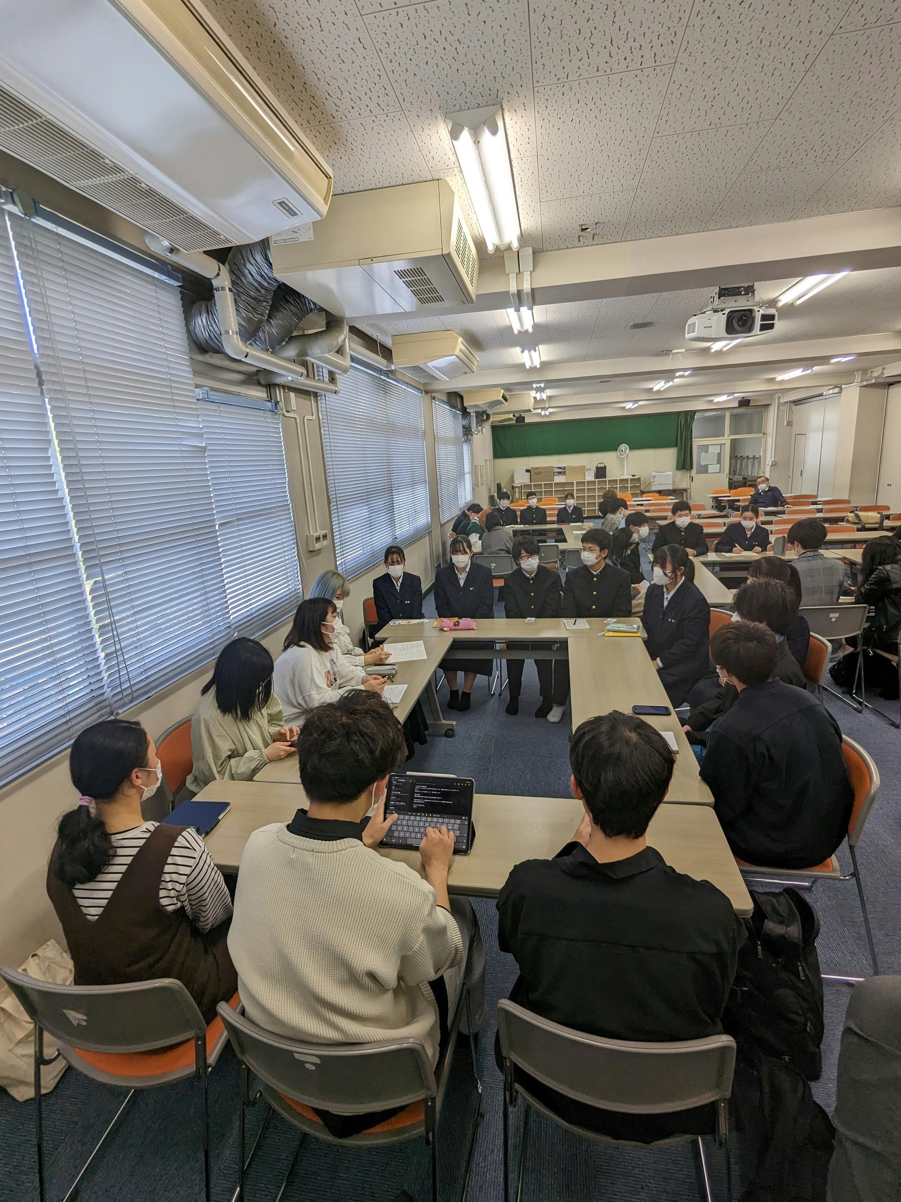 神戸商業高校生(商業科3年5名、会計科3年3名、情報科3年3名)と神戸芸術工科大学まんが表現学科の関係者21名(先生および学生)でミーティングを行いました。芸工大生が在校生に対し、神戸商業高校3学科の魅力についてインタビューを行いました。
