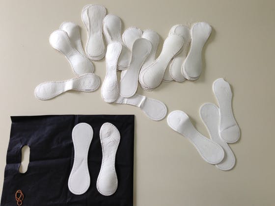 ▲裁断した革のイメージ。実際の野球ボールに使用される革(国産)を送ります。画像は【自主トレコース】です。