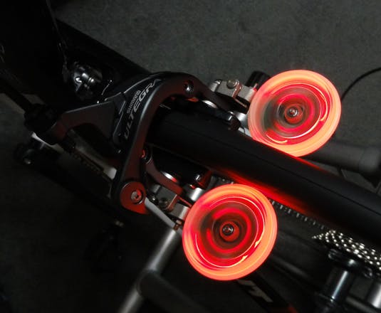 自転車の時速7km以上で後ろブレーキを動かすと、LEDが赤く発光します。