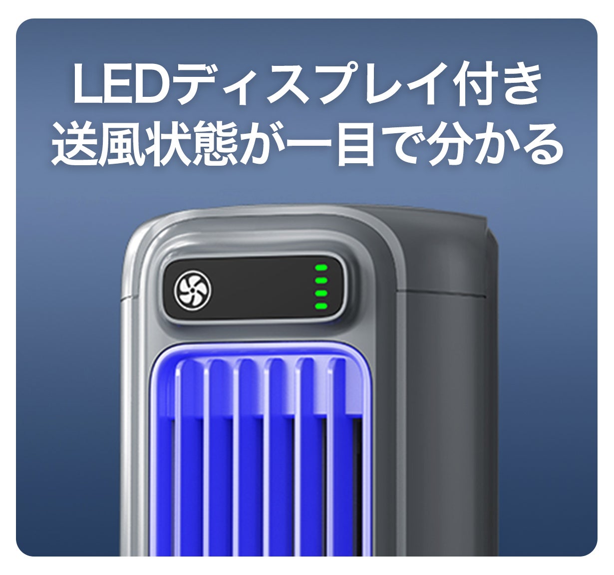 LEDディスプレイを配置され、バッテリー残量と風力設定をリアルタイムで表示します。それにより、一目で扇風機の使用状態を把握でき、使い勝手が大幅に向上します。バッテリー残量が一目で分かるため、予期せぬ電池切れを防ぎ、外出先や電源が遠い場所でも安心して使用できます。