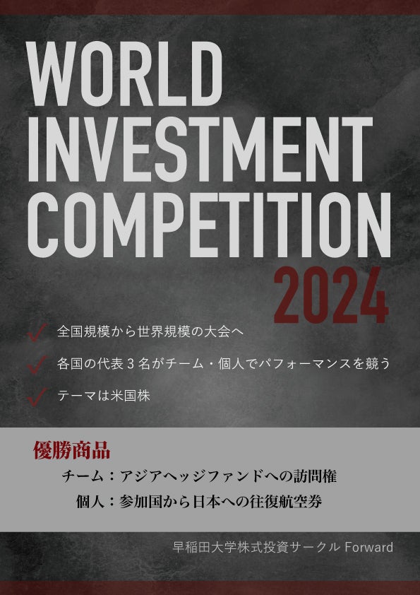 我々学生が返せるリターンは他のものに比べてごくわずかで、「支援者のメリットが少ない」と感じる方もいるかと思います。しかし皆様からの支援は、10年後、20年後、30年後の日本の学生投資家の未来に大きな影響を与えます。水面に投じられた小石の波紋が大きく広がっていくように、この大会の成功が、日本の将来の投資家の未来を変えていくと信じています。