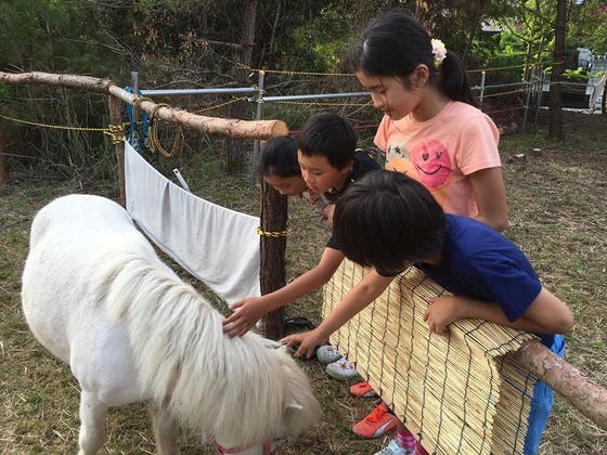 一昨年より 乗馬セラピーをするため 大きな馬を迎え 乗馬セラピーを開始したのですが、原因不明の病気で亡くし その後は 新たに小さな馬を迎え 小学校や施設などに馬を連れて訪問ホースセラピー活動をしながら、当方の放牧場では 小さな子供達の曳き馬や乗馬をする活動を続け 今に至ります。