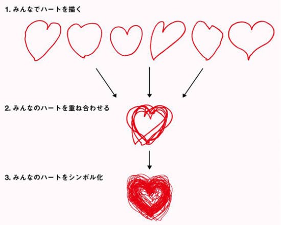 2013/12/12 18:43「今年のクリスマスは、サンタさんを待ってる場合じゃない! 真っ赤なサンタ帽子を自らかぶって、 自分たちが暮らすまちに、笑顔をプレゼントしよう!」 そんないわきのみなさんのハートがひとつになって、このマークは出来上がるのです。 スパリゾート・ハワイアンズのフラガールたちをはじめ、 多くのいわきの方々が、ロゴづくりに参加してくれました! 更に23日のイベント当日には、会場内でハートを集めます。 来年から本格始動する「親切♥第一 〜MERRY SMILE CITY in いわき〜」のロゴマークに、あなたも一筆加えてみませんか!? どんなハートが完成するのか、乞うご期待! もっと見る