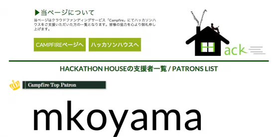 2014/05/15 12:42お久しぶりです! ハッカソンハウスのくりしーです。 活動報告がほとんど出来ておらず申し訳ございません^^; 本日ハッカソンハウスのホームページ内にパトロンページが完成しましたのご報告致します。 トップ画像の中央から少し下の「Patron」にて移動できます。 http://house.hack-a-thon.jp/patron また、最近のハッカソンハウスの近況ですが、 土曜日曜日は多くの学生・社会人が開発勉強会を開催しにきたり、遊びや見学に来られたりしております。大体毎週土日に10人〜15人の方が訪れているイメージです。 ハッカソンハウス内の施設についてもパワーアップが行われており、以下の変化がございます。 ①カリモク60ソファの導入(1階) ②Leap Motionの導入 ③Oculus Riftの導入 ※来週中に手元に届きます ④Virtix Omniの導入 ※2014年9月発送予定 等々 是非、気軽に訪れにきてくださいー☆ 最後に、現在ハッカソンハウスのコンセプトを元に、 東大付近にハッカソンハウスのような家を増やし、縦横横断的なクリエイターの、クリエイターによる、クリエイターのためのコミュニティ「ハッカソンビレッジ」を作ろうという構想が進んでおります。 こちらに関してははfacebookやtwitterでも触れておりますが、1、2ヶ月以内に2軒目のオープンがほぼ決定しております。 今後、日本の文化に合わせた日本版のシリコンバレーを東大付近にできたら最高ですね。 こちらについて興味のある方等がいましたら是非ご連絡下さい! 以下のリンクへ記載して頂ければ対応致しますノ https://docs.google.com/forms/d/1RjVBYeTQjFg-yA4EzP7AHRTJ-T_aj00jruSwnz9uSl0/viewform では今後とも何卒よろしくお願いします!! くりしー もっと見る