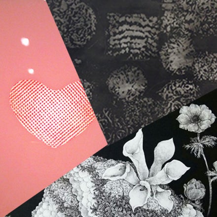 この作品は、あるものを版に押し当て、腐食させることで版を作っています。