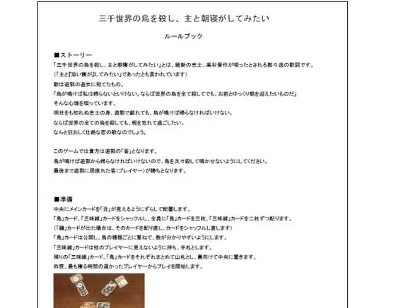 ■三千世界の烏を殺し、主と朝寝がしてみたい-ルール