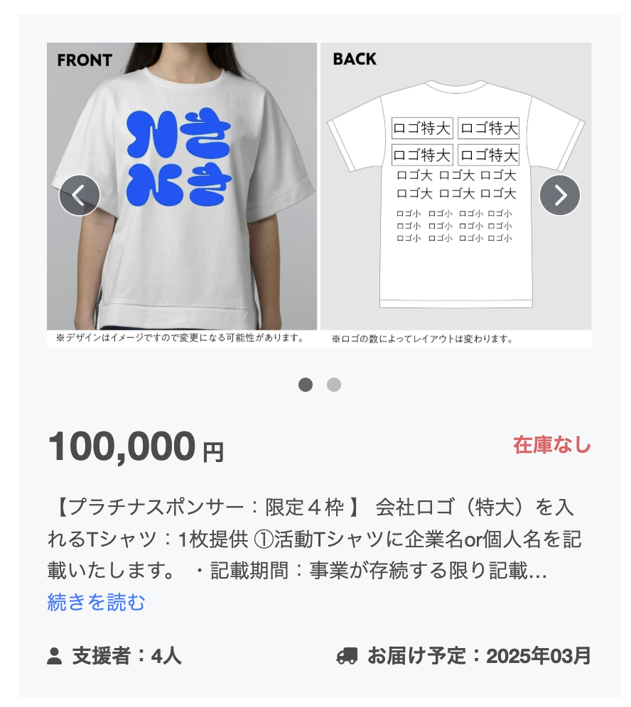 スポンサー枠のTシャツがこれ以上名前が載せられないほど埋まりました!支援者の大半は顔の浮かぶ知人、主には東京や大阪など県外からの繋がりがほとんどでした。これは、私を含めメンバーの多くが移住者で、都会との繋がりが強いためだと思います。