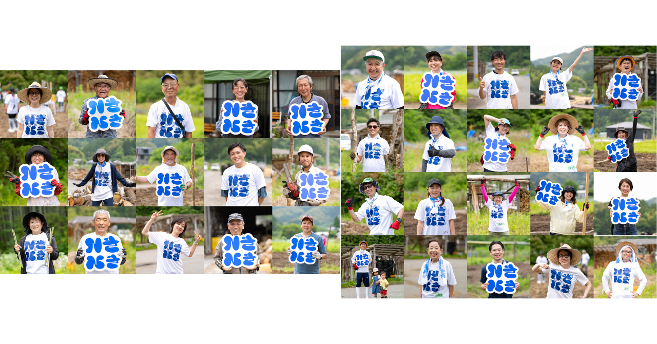支援者と質の高い交流が生まれたことです。クラウドファンディング達成後には支援者限定で地元の方と一緒に、農作業体験やイノシシを味わう会を開催しました。リターンのTシャツや手ぬぐいを着た参加者との集合写真は、プロジェクトの象徴になりました。