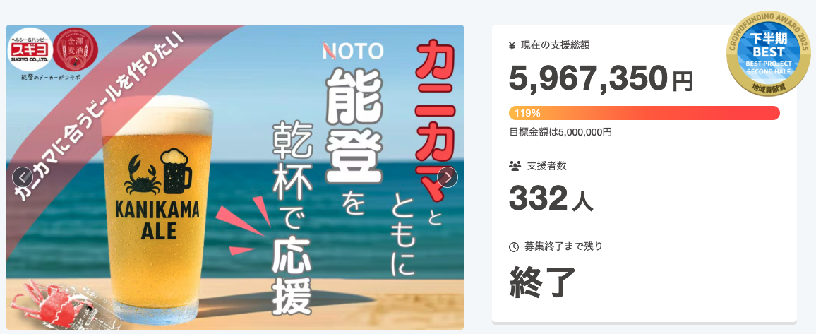 そして、こうしたクラウドファンディングやプロジェクトを通じて能登の企業を応援していただければ嬉しいです。私たちは、皆さんの応援を原動力に、これからも能登ならではの価値を発信し続けます。