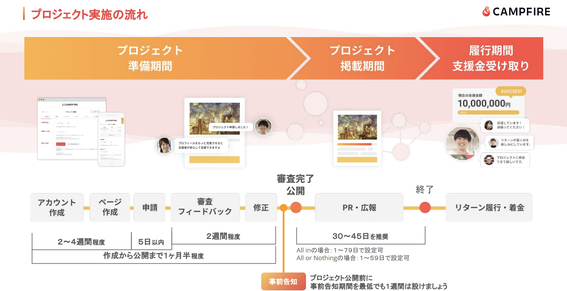 プロジェクト掲載期間が始まる前に準備をして、スタートダッシュを切りましょう。