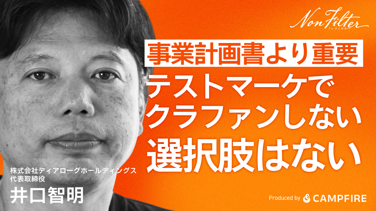 井口智明さん:まず、さっき最初に言ったように、10個やって1個当たるかどうかなんですよ。だからテストマーケティングが大事で、事業計画をめちゃめちゃ細かく作るのも大事なんですけど、正直テストマーケティングでやってしまった方が早い。クラウドファンディングはそのためにあると言っても過言じゃないくらいなので、あれこれ事業計画を死ぬほど作るくらいだったら、もうクラファンを出してしまえと。商品を少ない数から作れるので、新しいことをやるのにクラファンを使わないという手はないんじゃないかなと思います。