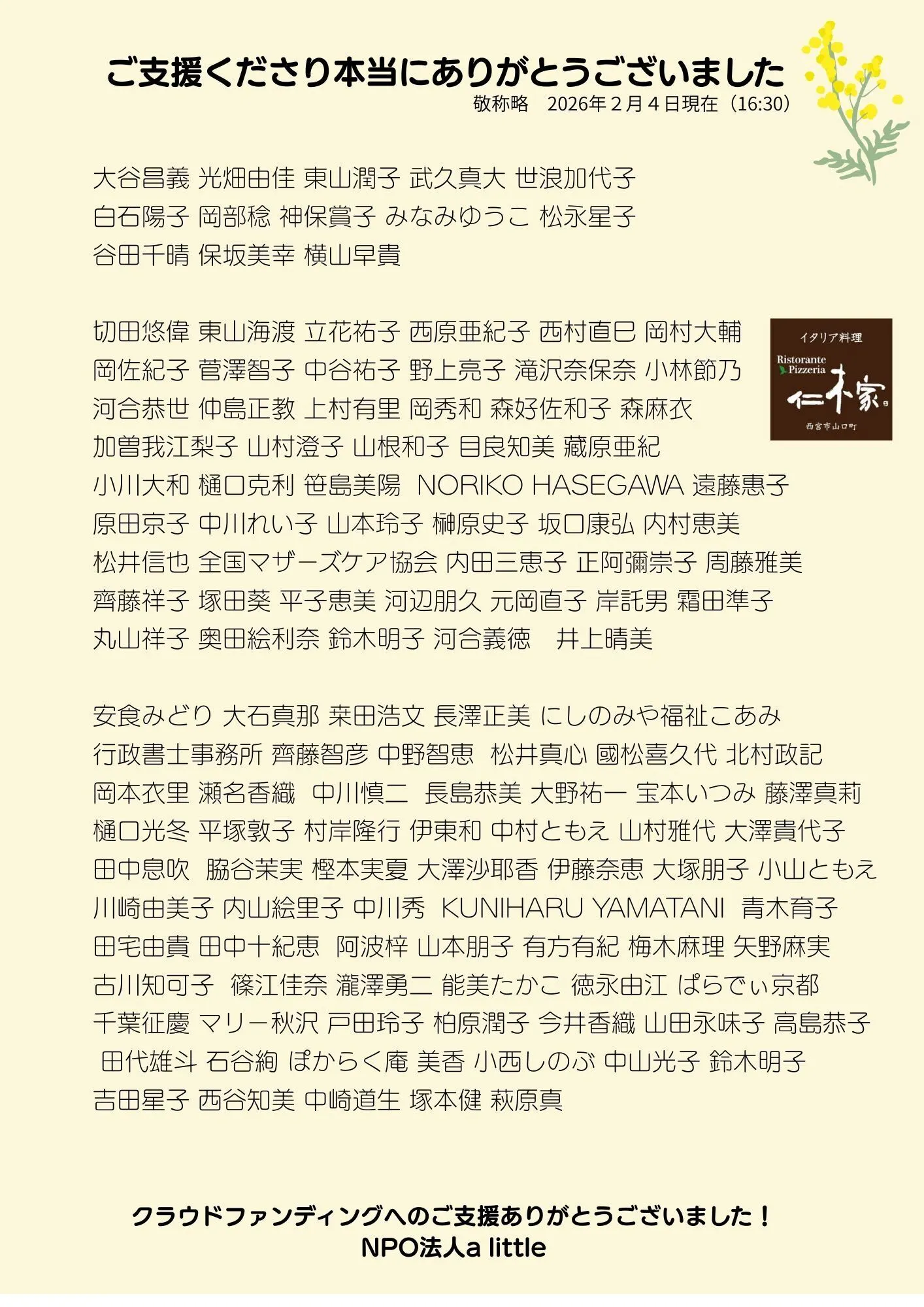 クラウドファンディングへのご支援ありがとうございました。おかげさまで58%達成しました!最終日の3月22日日曜日まであと2週間となりました。まだまだ広げていただきますよう宜しくお願いいたします!!