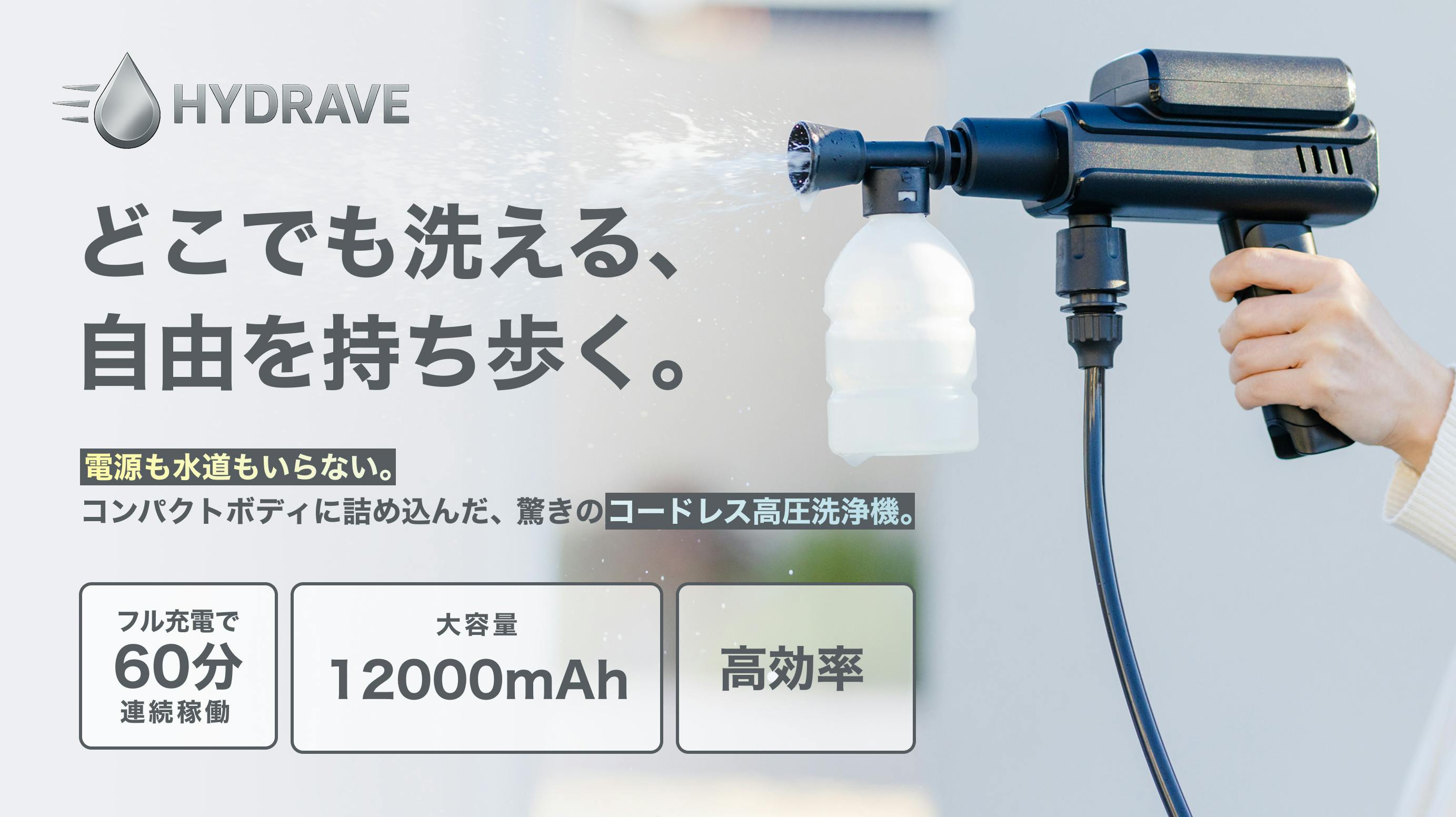 HYDRAVE(ハイドレイヴ)プロジェクトを応援いただきありがとうございます。今回は、ポリタンクから吸水して使用するシーンをご紹介します。HYDRAVEコードレス高圧洗浄機は付属の吸水ホースを使用することで、ポリタンクやバケツなどから水を吸い上げて使用することができます。今回の動画では、ポリタ...
