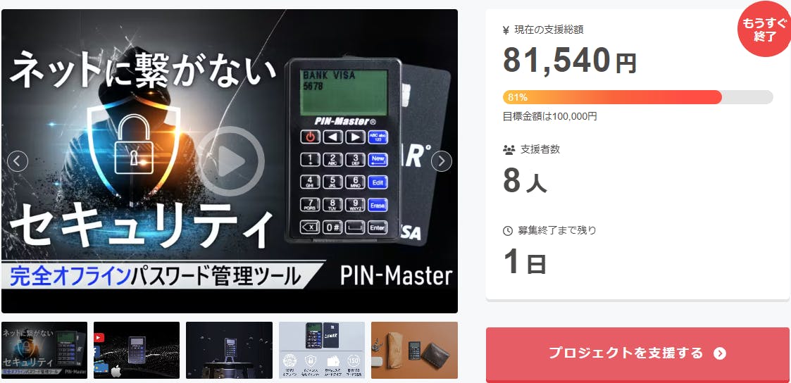 ご支援者様、完全オフラインでアナログと同等のセキュリティ!超薄型パスワード管理ツールにご興味をお持ちいただきありがとうございます。お陰様で、開始から支援総額8万円達成することができました!終了までわずか 1 日となります。<【1月31日までの支援ですぐ届く! 】ネットに繋がない完全オフラ...
