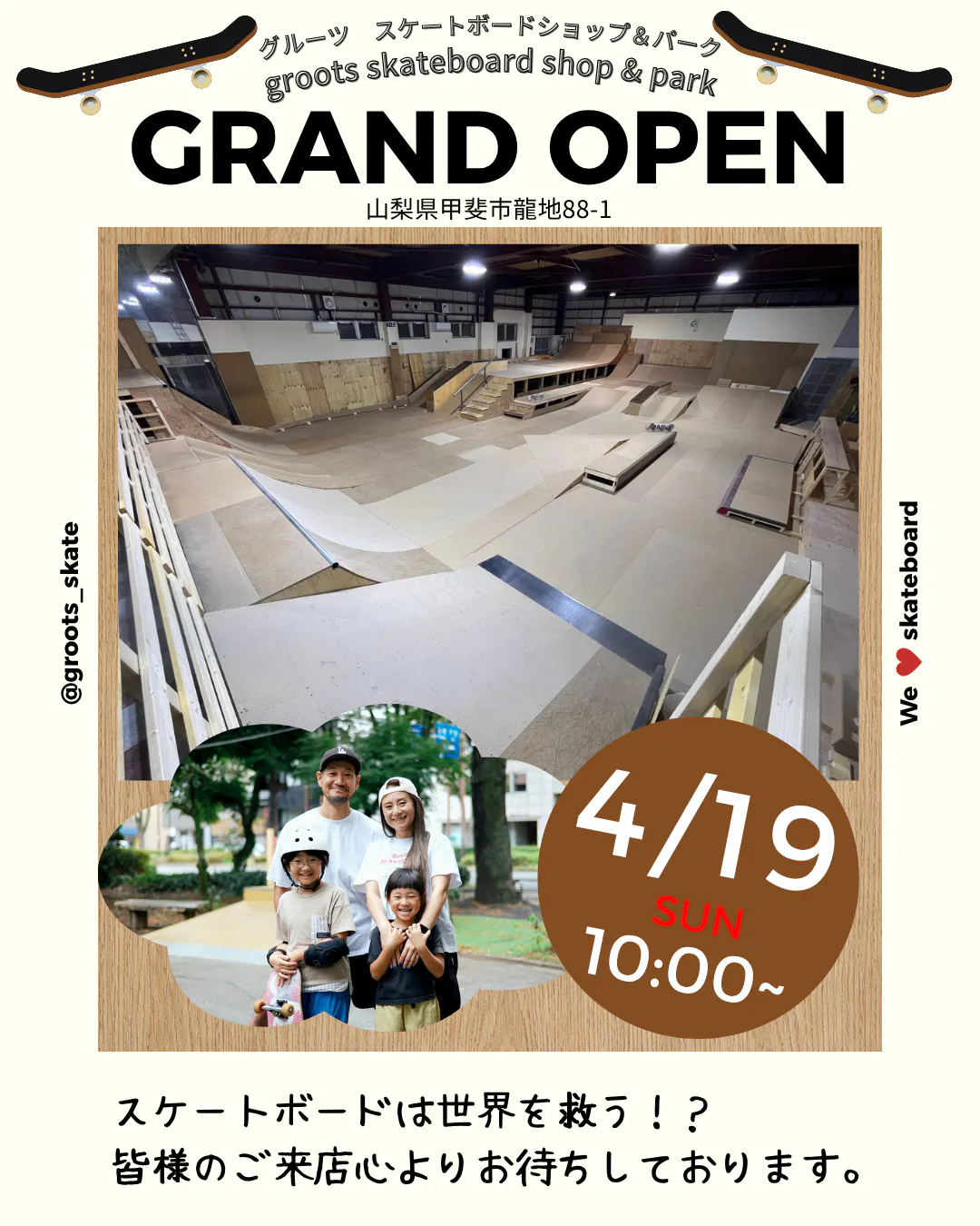 予定より2か月も遅れ、紆余曲折しながらようやくここまで来ることができました。4月19日 日曜日 10:00~ groots オープンさせていただきます!皆様からのパワーをもらい、折れそうなときもあきらめずここまで来れました。ありがとうございます。ここからスタートラインに立てます!これからたく...