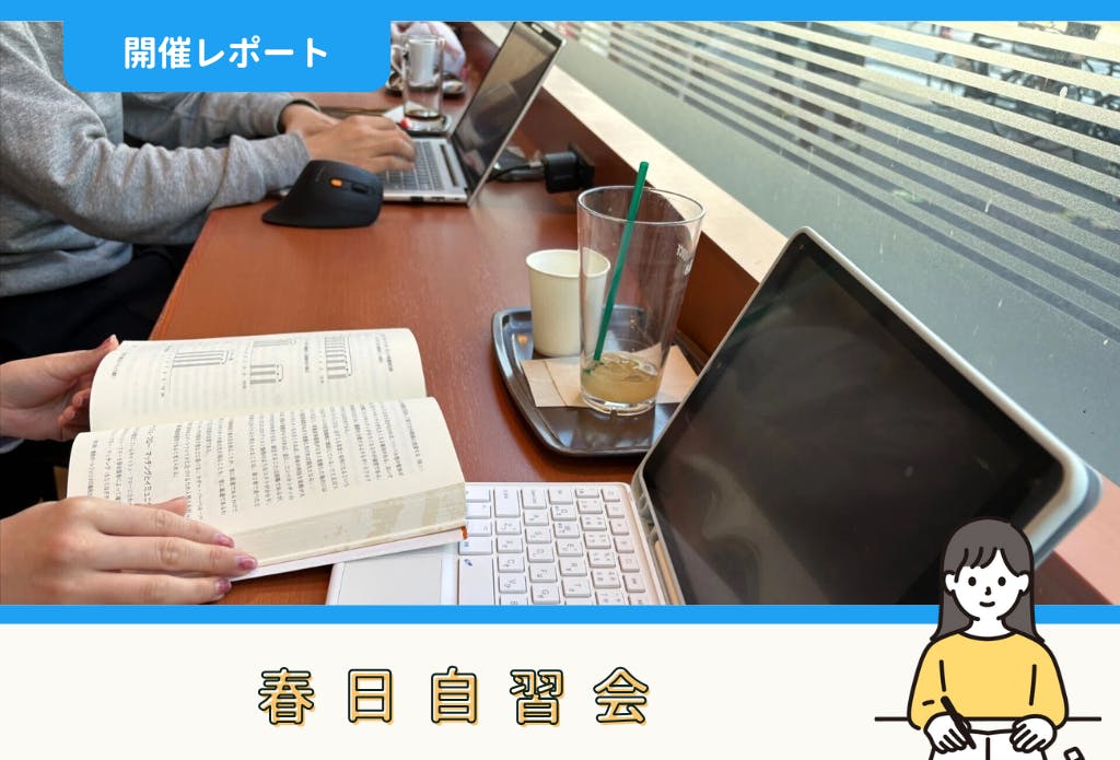 こんにちは!ファシリテーターの小西です(^▽^)/1月10日(土)に開催した春日自習会の報告をします。目次1.タイムスケジュール2.勉強・作業内容3.感想参加申込みはこちら!1.タイムスケジュール今回は下記のタイムスケジュールで開催しました。08:00 開催場所に集合08:10 簡単に自己紹介...