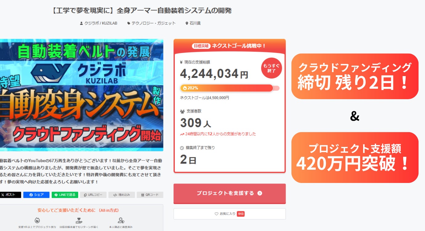 支援者の皆様、いつも応援をありがとうございます。クラウドファンディング終了まで、ついに残り2日となりました!おかげさまで、第3目標のネクストゴール「400万円」を大きく突破することができました。当初の目標だった150万円から、ここまで応援していただいた皆様、本当にありがとうございます。多くの方...
