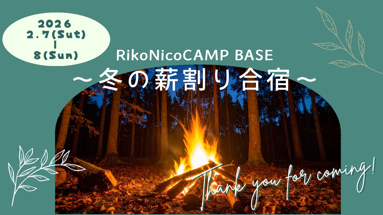 【冬の薪割り合宿|お申し込みスタートしました】お待たせいたしました!以前ご案内していたRikoNicoCAMP BASE冬の薪割り合宿、本日よりお申し込み&お支払い受付スタートしました♪✔薪割り・焚き火✔みんなで作る合宿ごはん✔テント泊なしの一棟貸し別荘泊冬キャンプが初めての方や、オフ会が初参...