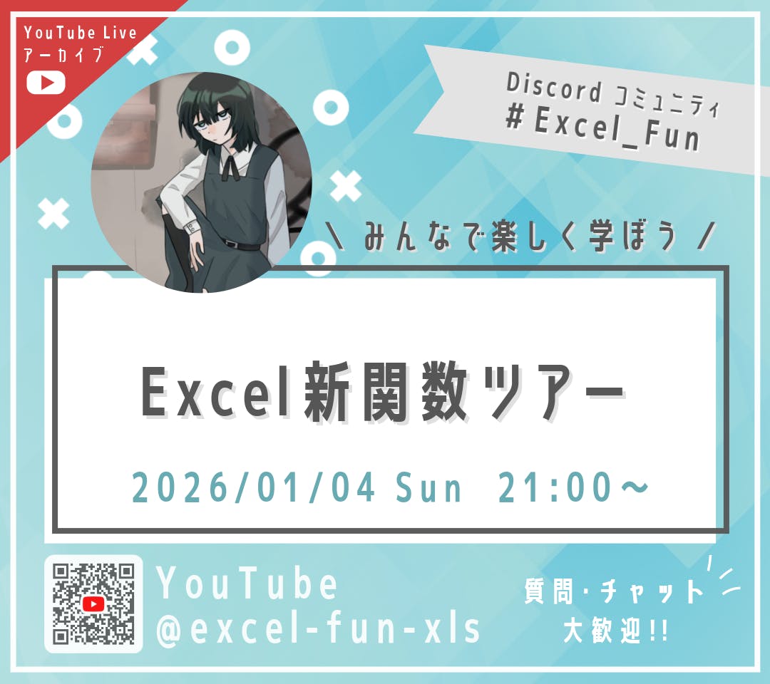 \Excel新関数ツアー/Office 2010から2025年までに追加された関数について、ざっと説明します。明日から使える関数に出会えるかも!?どなたでもお気軽にご参加ください!登壇者:ぷりずむぷろぐらむ さんX(Twitter):https://x.com/prizmPrograms※開催...