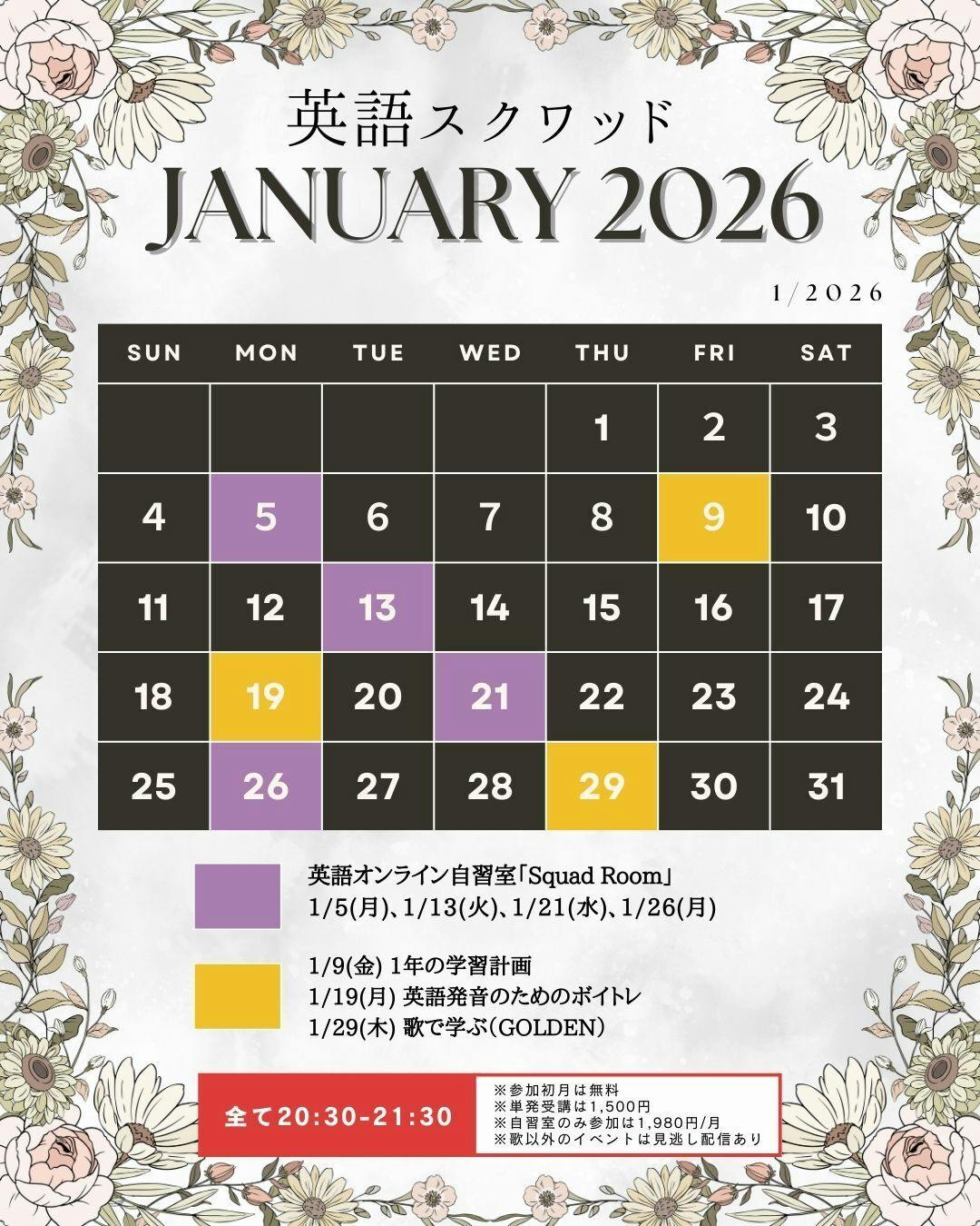 こんにちは!英語スクワッドのユリです。あと数時間で新しい年が明けます。今年ご一緒してくださった皆さま。ご参加まことにありがとうございました。スケジュールやお仕事の都合で毎月とはいかなくても、単発チケットでご参加くださる皆さま。いつもお心を寄せていただきありがとうございます。2026年も「心が元...