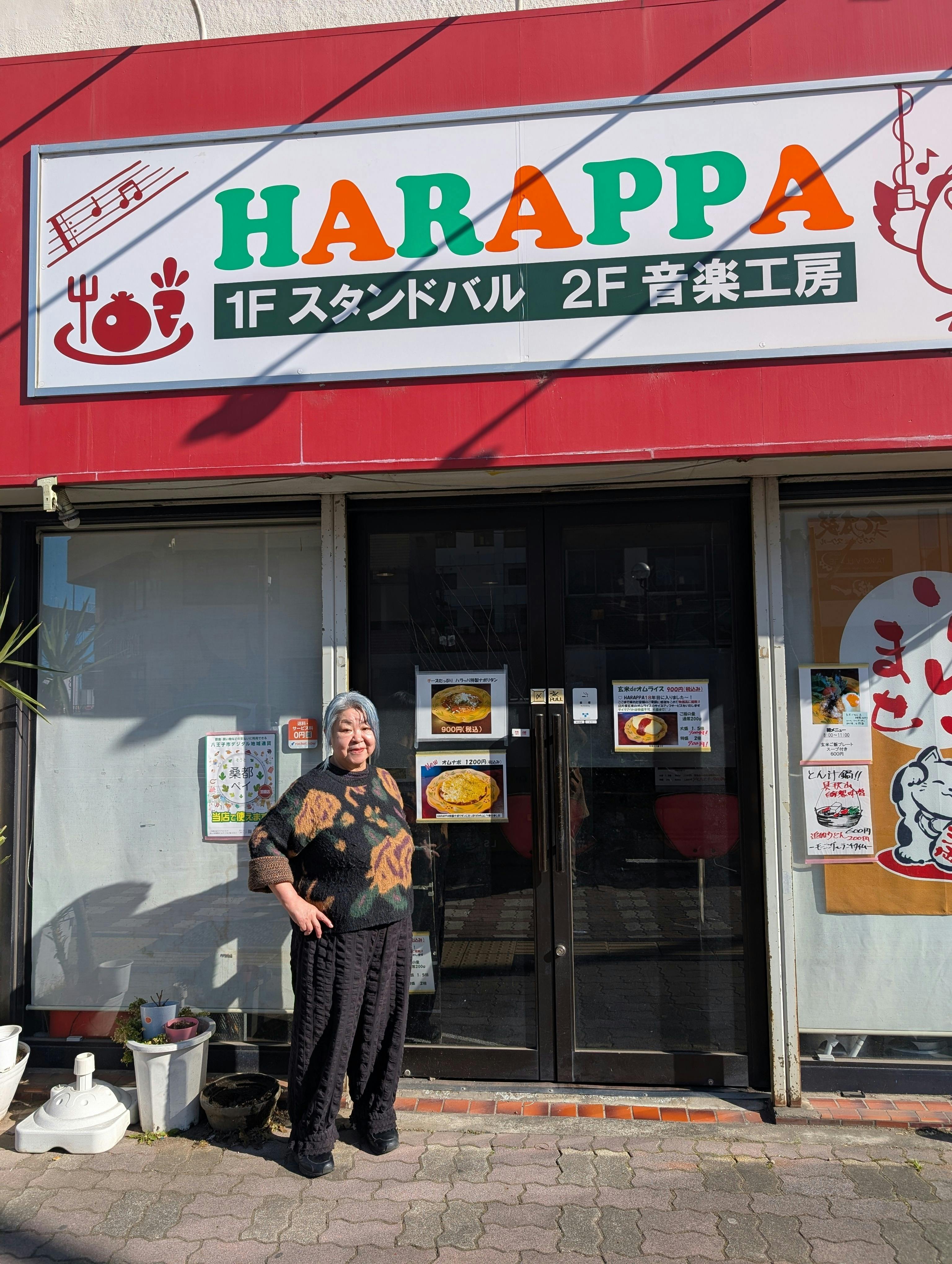 オーナーと旧HARAPPAです「お母さんが家族の為に美味しくて、身体の為にご飯を作っているお店」と称されています。このお店で18年やってきました。お客様も今日のご飯何かなーという感じでいらっしゃいます。
