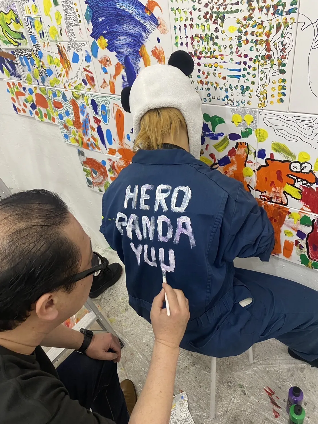 プロジェクトを支えてくれた皆さん。HERO PANDA YUUです。今更ですが、皆様への御礼の気持ちも込めて活動報告で、今回の個展を振り返り報告です!3月22日。真っ白だったキャンバスも、毎日の線が積み重なって、かなり賑やかになってきました。この日は脚立を使って、高いところまでワテの線を届かせ...