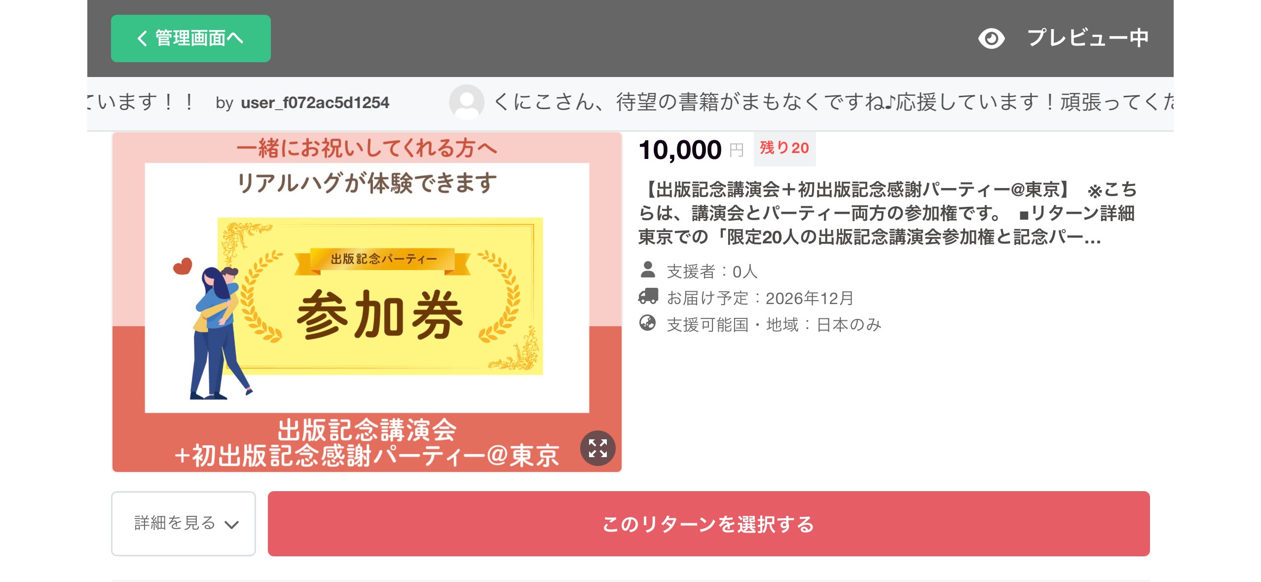 こんばんは!追加情報が公開されたのでお知らせさせてください〜【追加リターン】記念講演&初出版記念パーティ@東京限定20人様2026年12月12日(土)18:00〜20:00食べ放題、飲み放題、ハグし放題(笑)・コルベット夫婦とリアルでハグをしたい方・私の初出版を一緒にお祝いしてくれる方...
