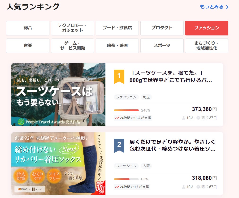 昨日公開した、トラベルアワード受賞のバックパック再販プロジェクトですが、おかげさまでファッションカテゴリーランキング1位を獲得しました。そして、開始30分での目標達成に続き、現在も多くのご支援をいただいています。本当にありがとうございます。こうして多くの方にご覧いただき、ご支援いただけているこ...