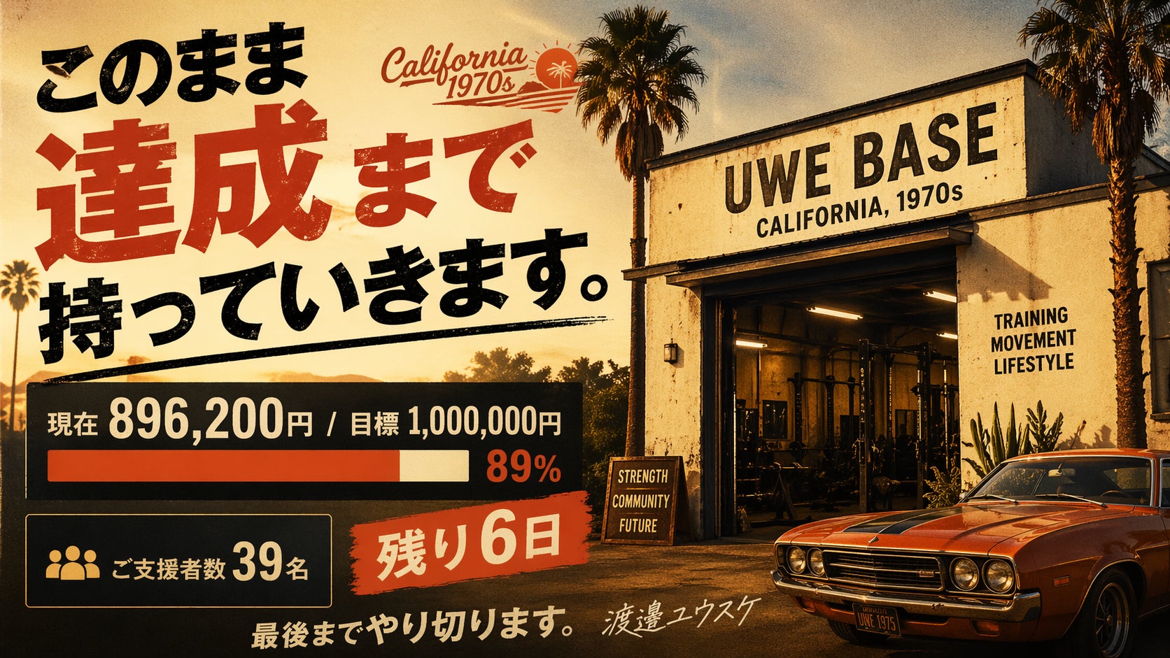 現在、896,200円、達成率89%まで到達しています!!目標金額は1,000,000円。すでに39名もの方にご支援いただいています。ここまで来られたのは、間違いなく、ご支援いただいた皆様のおかげです!本当にありがとうございます。この数字の一つ一つは、単なる金額ではなく、「この場所を残したい」...