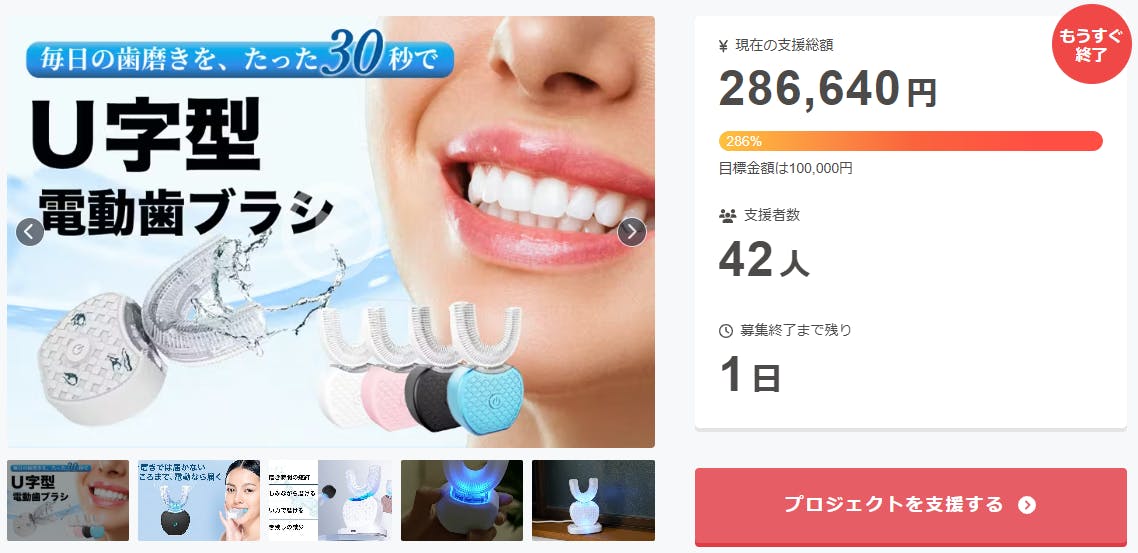 ご支援者様、毎日のケアを効率的に。音波振動ですき間までしっかりケア!次世代スマート歯磨きにご興味をお持ちいただきありがとうございます。お陰様で、開始から支援総額28万円達成することができました!終了までわずか 1 日となります。<虫歯や歯周病を防ぐ一番の方法は、毎日の歯磨きを正しく続ける...