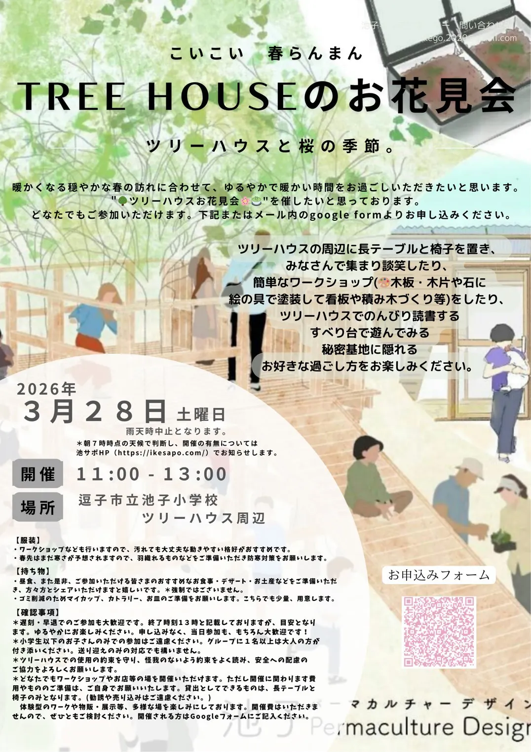 池子小学校の子どもたちの挑戦「夢見るツリーハウスをつくりたい」プロジェクトにご支援いただいた皆様こんにちは、池小キッズサポーターです。TREE HOUSE のお花見会 開催のお知らせ ツリーハウスと桜の季節。あたたかな春の訪れに合わせて、ツリーハウスの周りでゆるやかに過ごす時間をご一緒できたら...