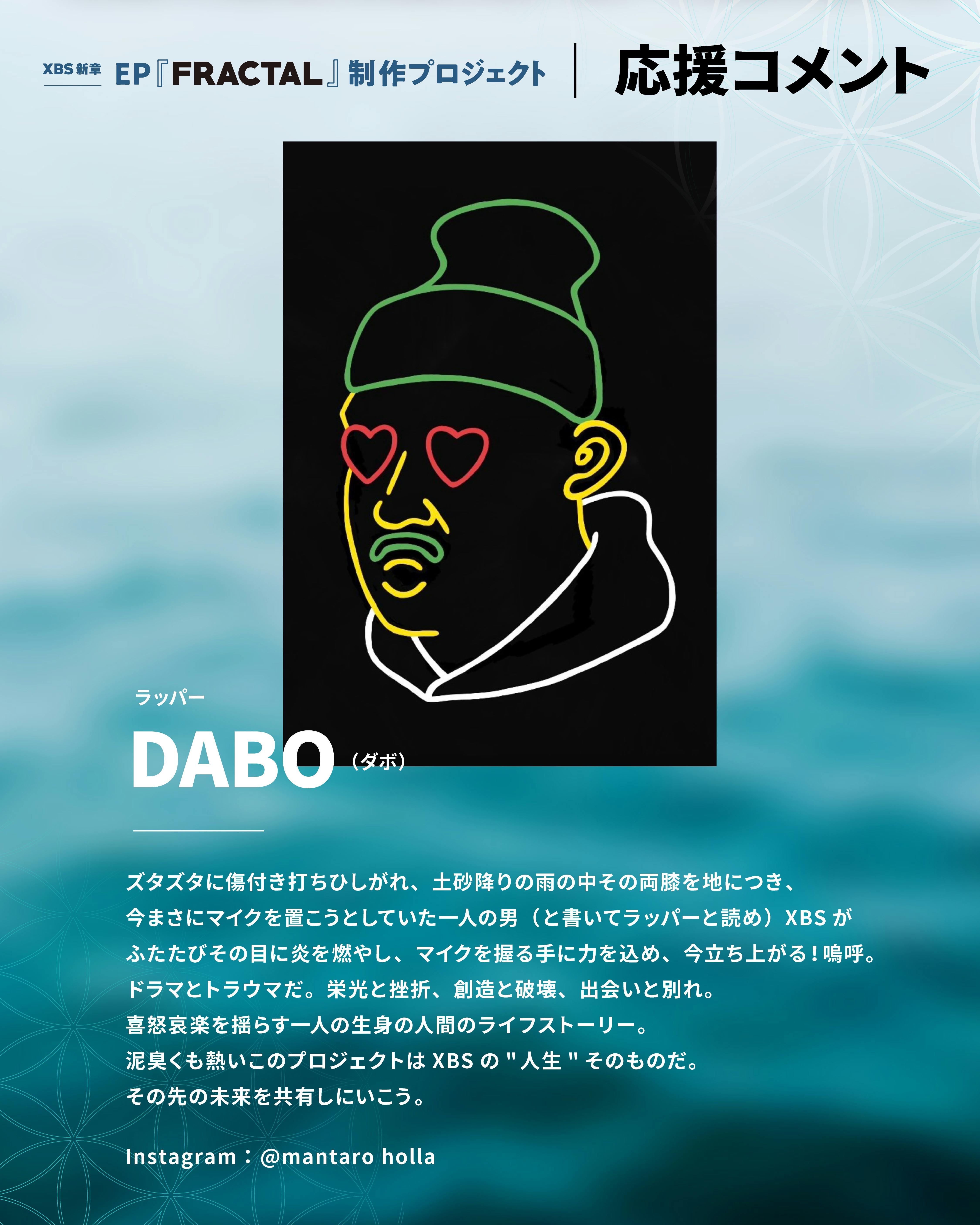 クラウドファンディング「XBS新章|EP『FRACTAL』制作プロジェクト」へのご支援、誠にありがとうございます。NITRO MICROPHONE UNDERGROUNDのメンバーDABOさんから応援メッセージをいただきました。プロジェクトは 2月28日まで 続きます。引き続き制作を進めながら...
